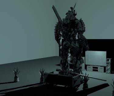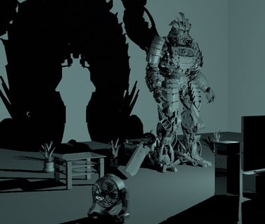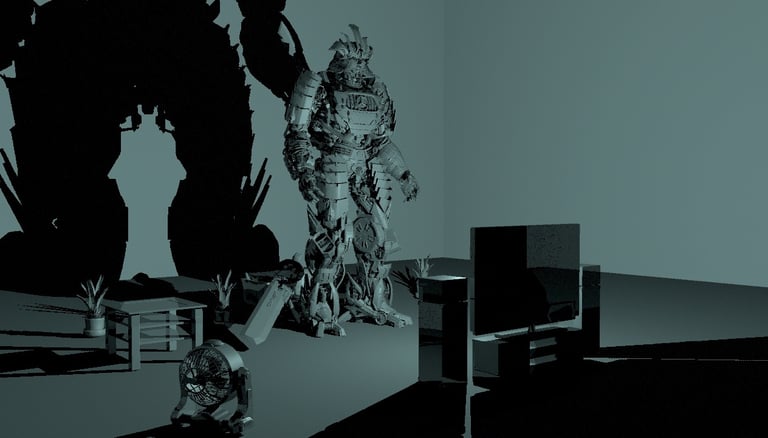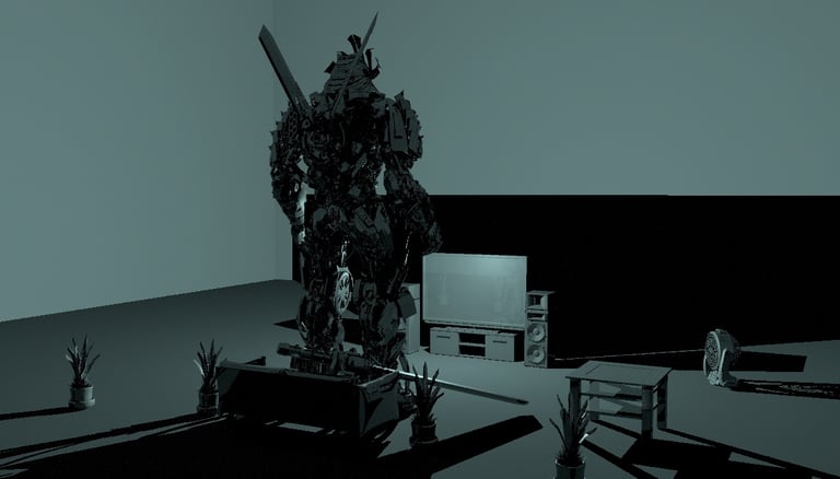 I have all of my assets and props in the scene and the composition is to my liking. Now i can start animating Drift and working on which movie scene in particular he's going to be watching/reacting to